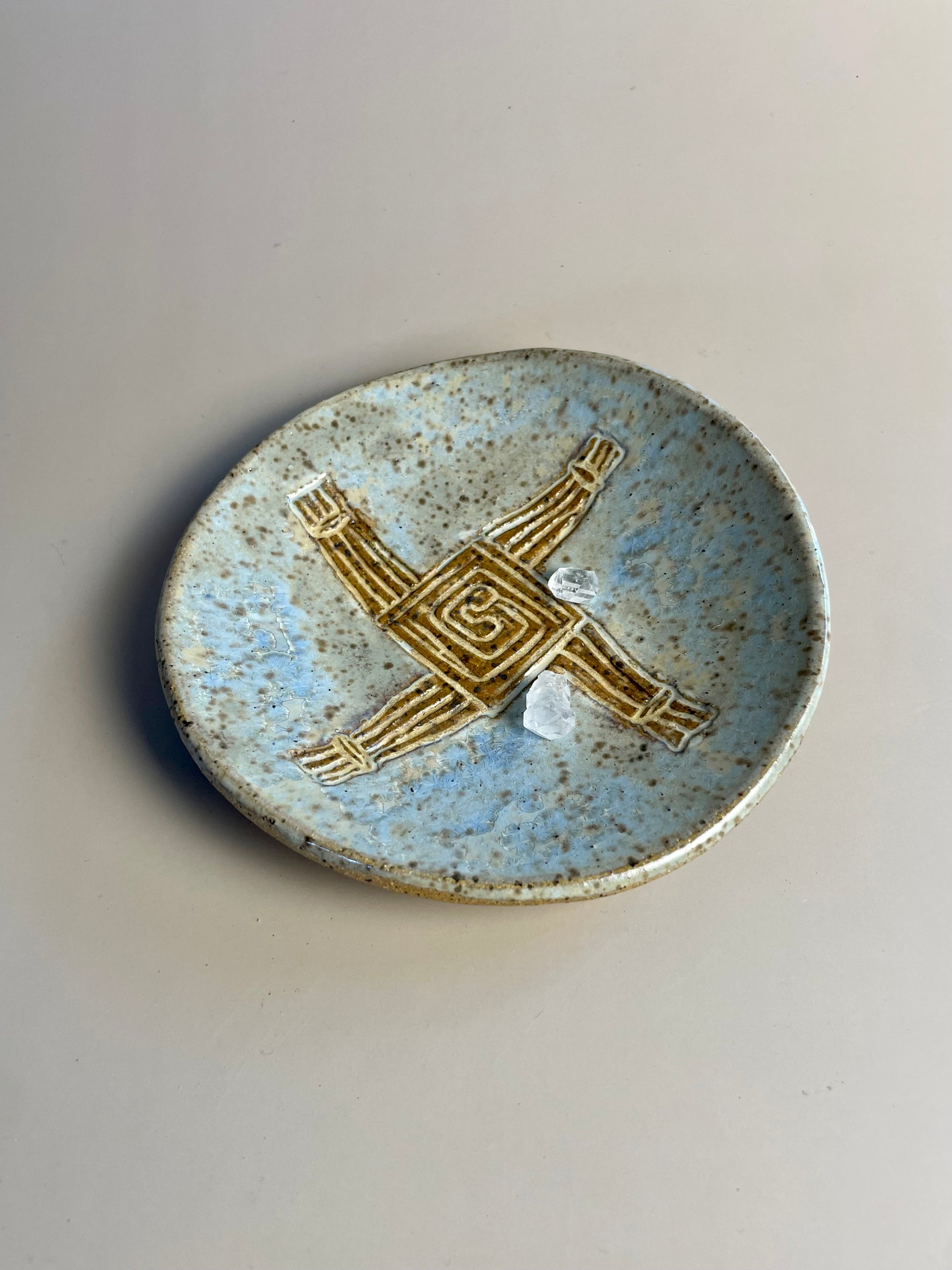 Hand carved Brigids Cross dish